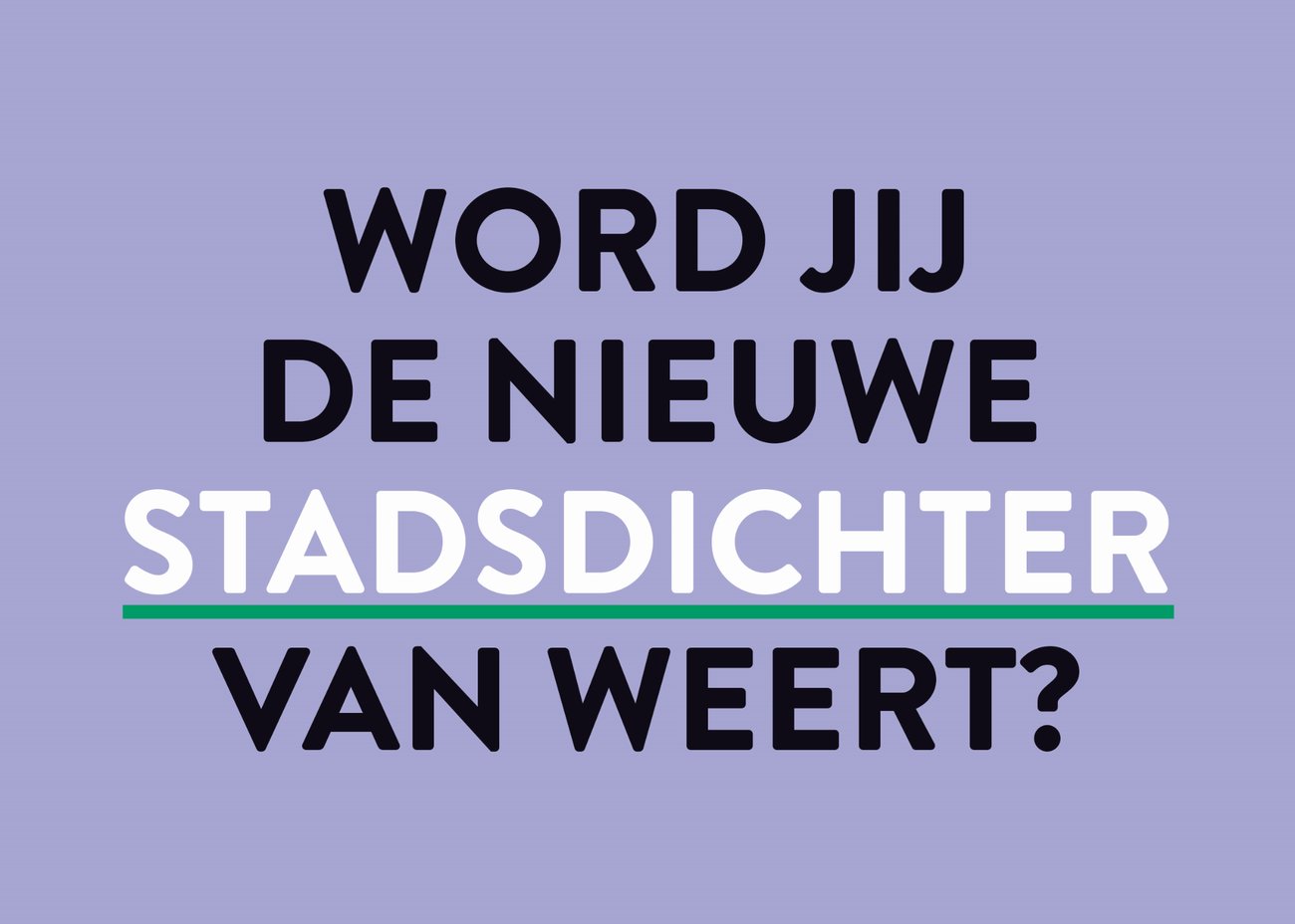 Bibliocenter is op zoek naar de nieuwe Weerter Stadsdichter: een dichter, woordkunstenaar of taalvernieuwer die met taal een stem geeft aan wat leeft in onze gemeenschap. Iedereen vanaf 18 jaar met passie voor taal en Weert kan meedoen.